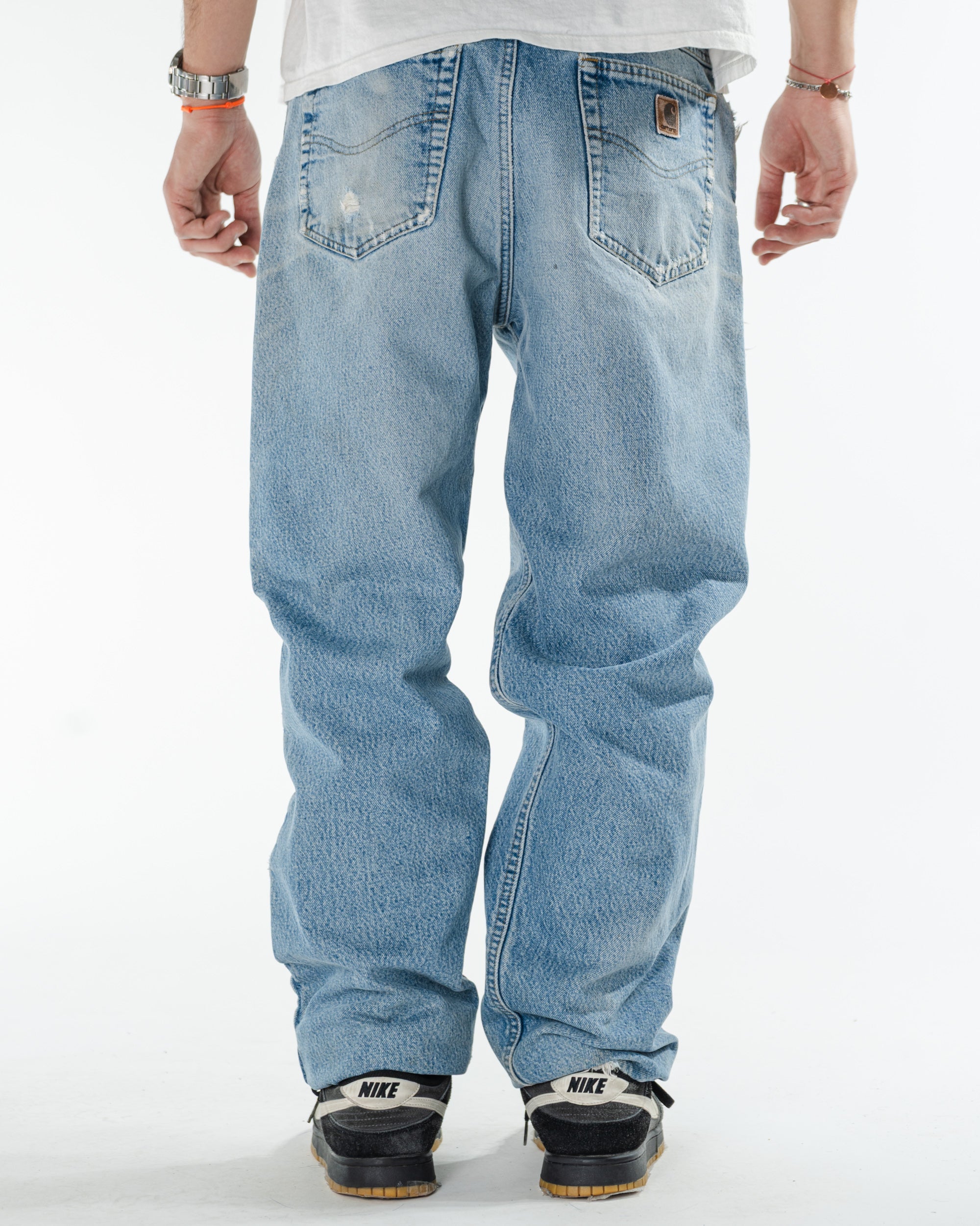 For a baggier fit, don’t be scared to size up and wear a belt.
